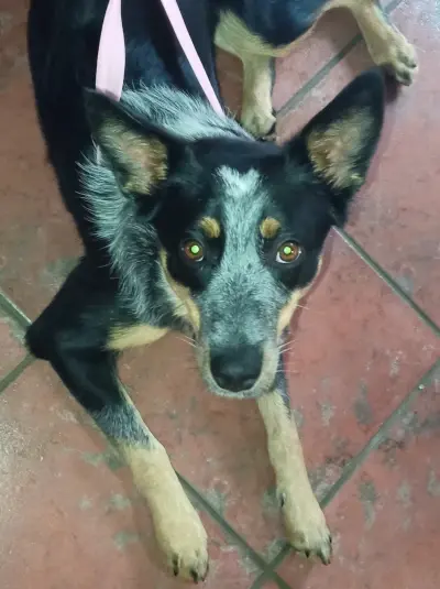 Toujours joyeux, toujours partant, toujours un peu bébé dans son cœur. Doux, lumineux, et si heureux de faire plaisir — un rayon de soleil sur pattes.